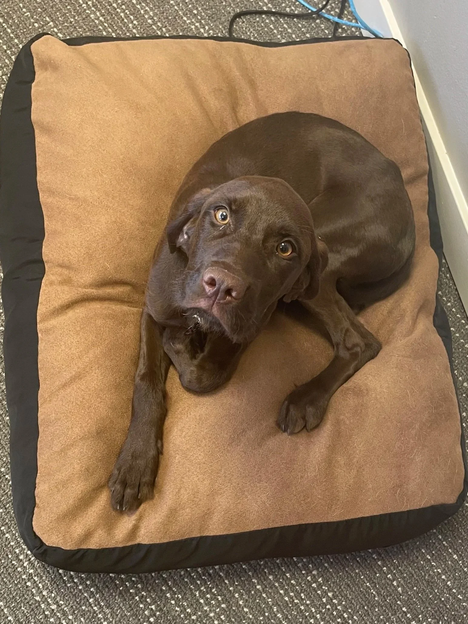 Our newest office dog is Selkie—named after the mythological creature that can change between human and seal form. Selkie is a pudelpointer in case you were wondering and has been learning to be a good bird dog. Selkie is still a puppy (as of 8/2025) so antics may ensue when she is present.